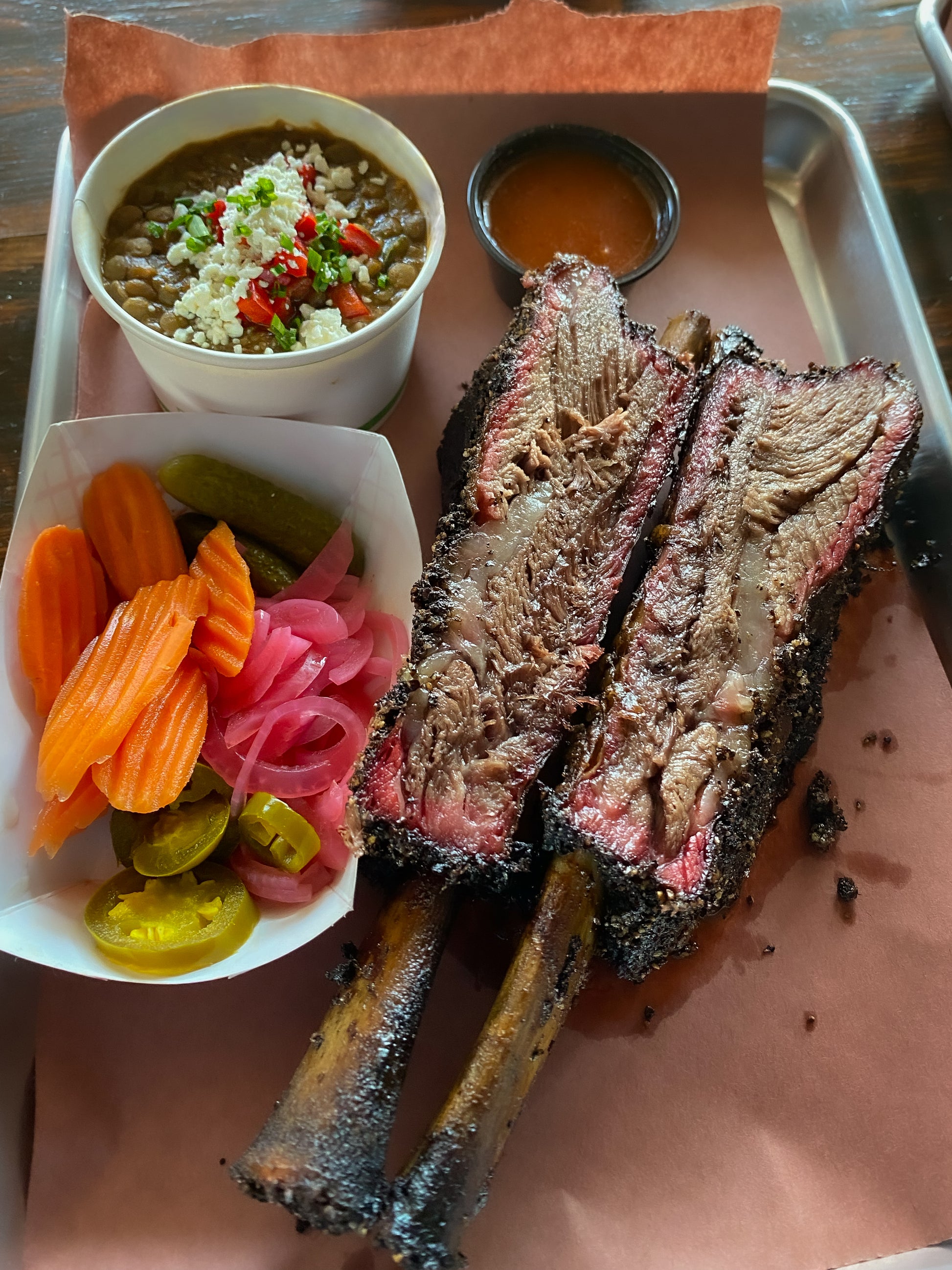 These USDA Prime beef ribs are dry-rubbed with a classic 90/10 blend of coarse black pepper and kosher salt, then slow-smoked for over 6 hours over real applewood. The result: melt-in-your-mouth tenderness and a rich, smoky black bark that packs deep flavor in every bite. Massive, meaty, and primal—this is Texas barbecue at its finest.